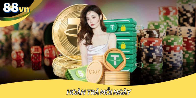 Hoàn trả mỗi ngày giúp người chơi giảm bớt tổn thất và tiếp tục cuộc chơi đầy hứng khởi. Chính sách này được xem là điểm cộng lớn, giúp người chơi cảm thấy yên tâm hơn khi tham gia cá cược. 88VN luôn chú trọng cải tiến ưu đãi để đáp ứng nhu cầu giải trí và quyền lợi của người tham gia. Chương trình hoàn trả có thể lên đến 3% mỗi ngày, tính trên tổng số tiền cược hợp lệ của người chơi.